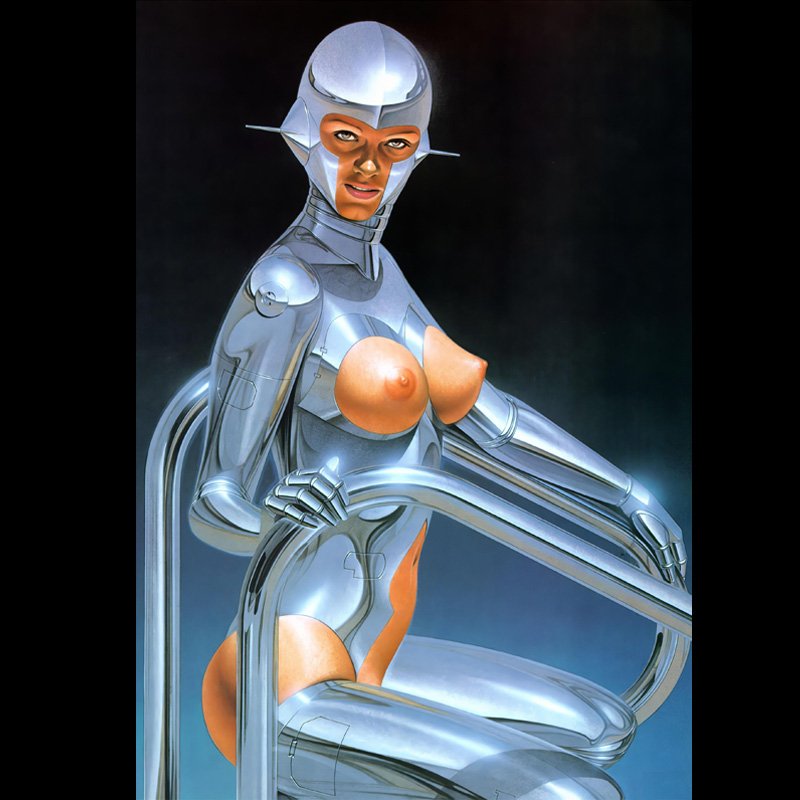 Hajime Sorayama (空山 基, Sorayama Hajime, born February 22, 1947) is a Japanese illustrator known, along for his design work on the original Sony AIBO, for his precisely detailed, erotic portrayals of feminine robots. He describes his highly detailed style as “superrealism”, which he says “deals with the technical issue of how close one can get to one’s object.” Modern English-language editions of Sorayama’s art books give his name as Hajime Sorayama, using conventional Western order, with given name followed by surname. Some older publications give his name as Sorayama Hajime, using native Japanese name order, which puts the family name first.