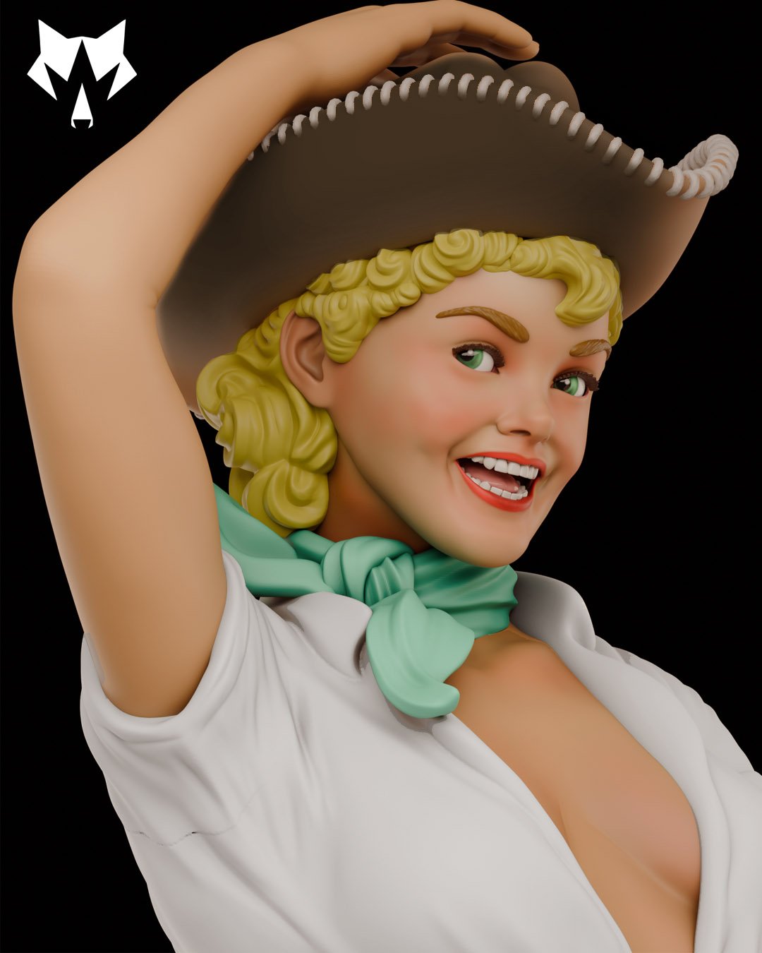 Sitting Pretty is inspired by Gil Elvgren’s art.