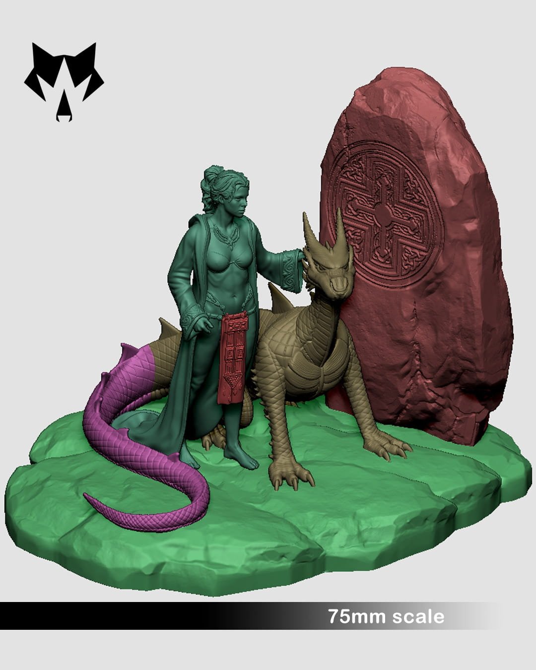 Inspired by the art of Keith Parkinson, “The Druid’s Stone” is available in 2 formats: 1/10 for collectible statue fans and 1/24 for miniature painters.